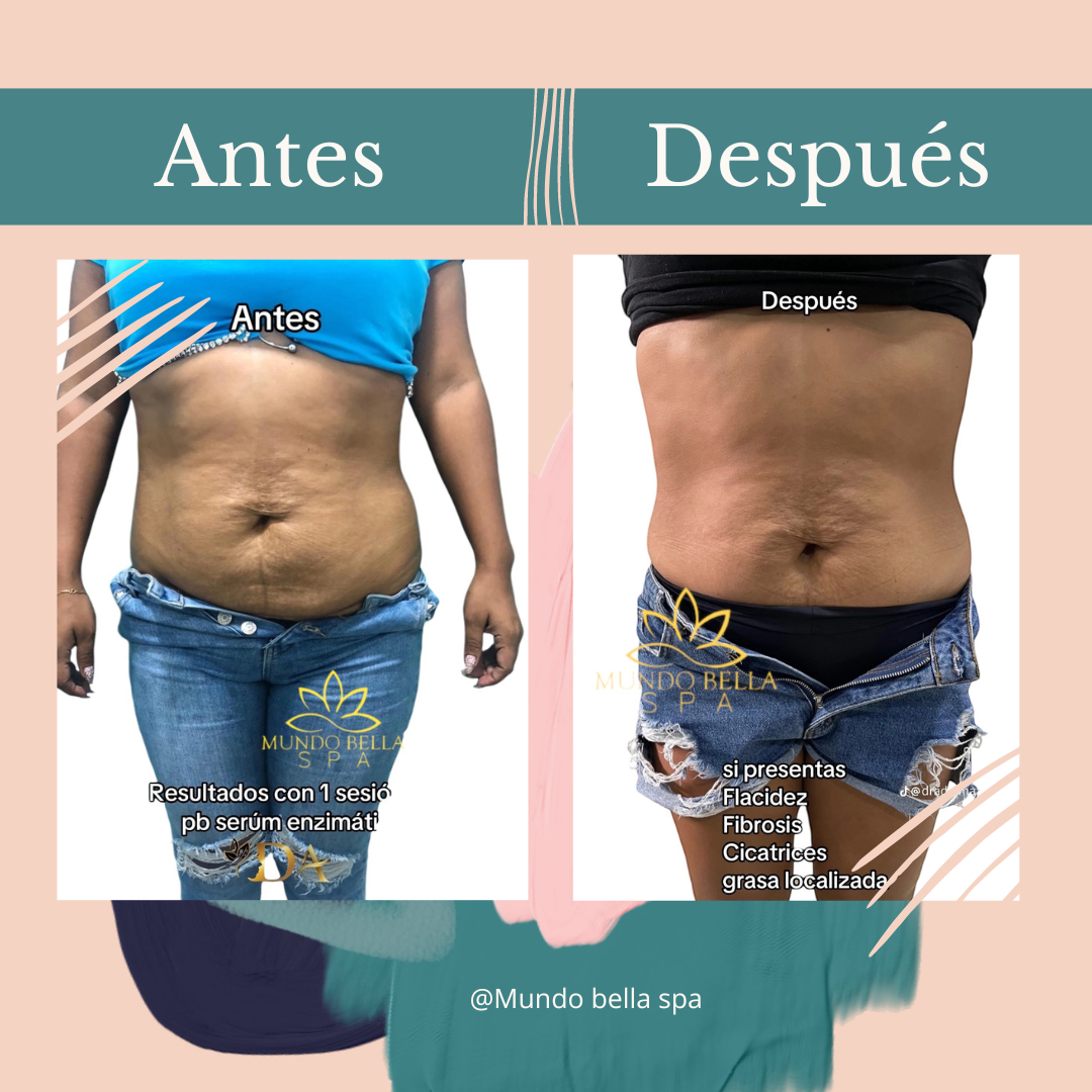 Las enzimas PB Serum están diseñadas a través de un proceso complejo biotecnológico actuando de manera selectiva donde la piel lo necesita. La sinergía de estas enzimas ayuda a reducir volumen y grasa localizada sin dañar tejidos. Favorece el drenaje linfático, mejora la microcirculación y la apariencia de la piel.
